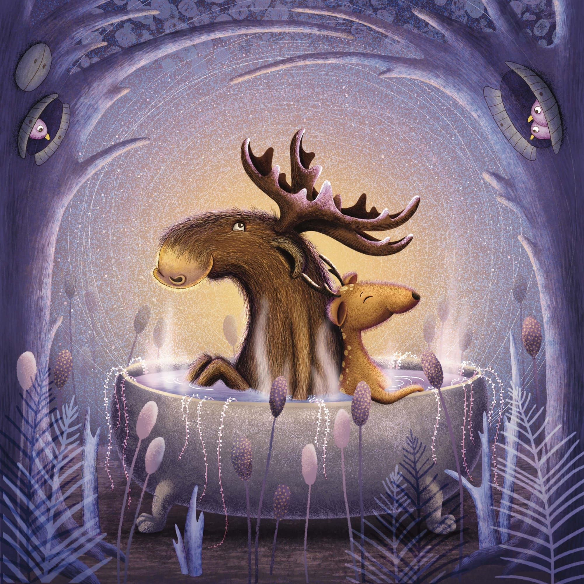 A mouse dreaming of flight, a fox robbed by mice, a moose taking a bath — each telling its own story.