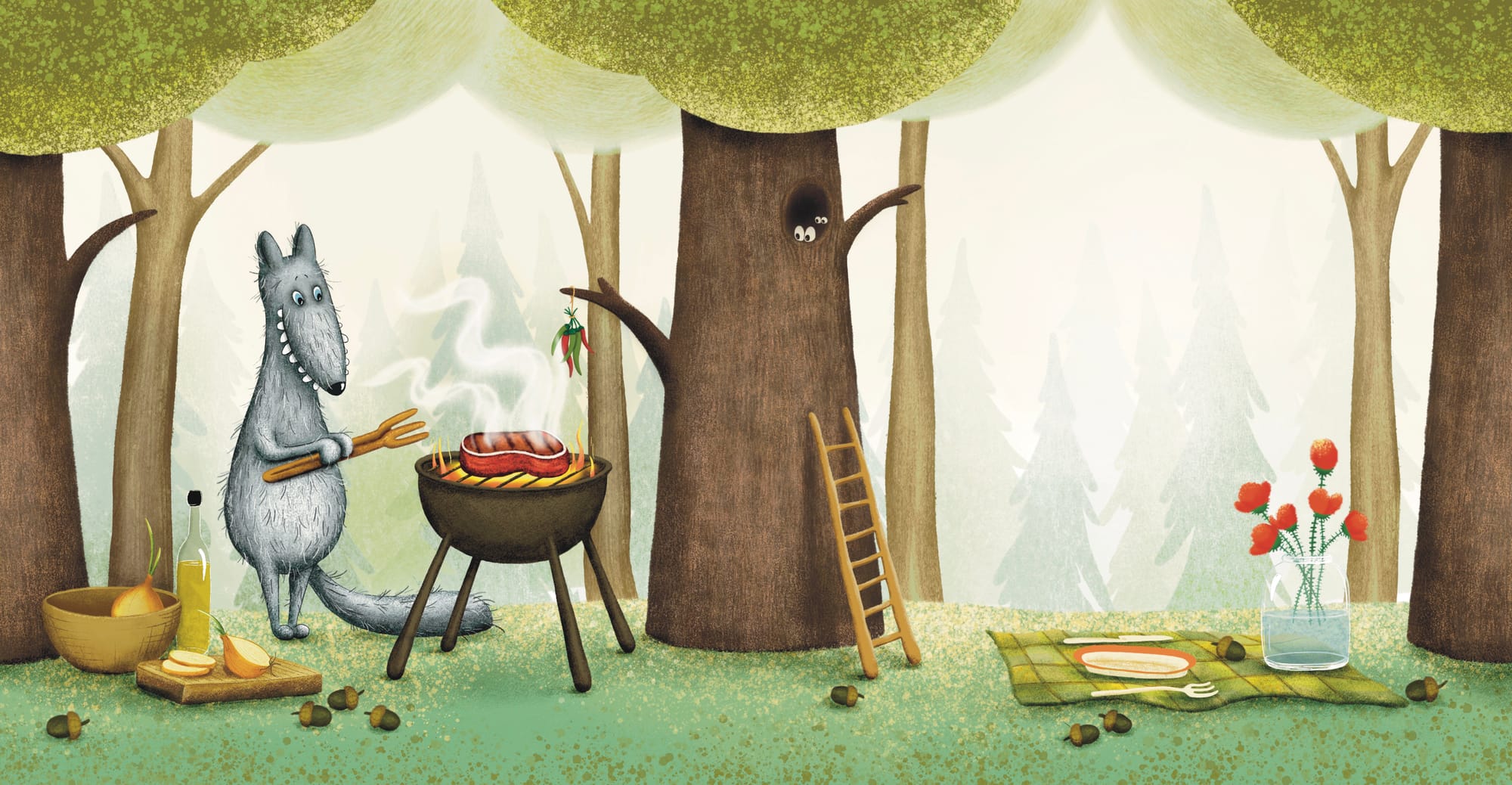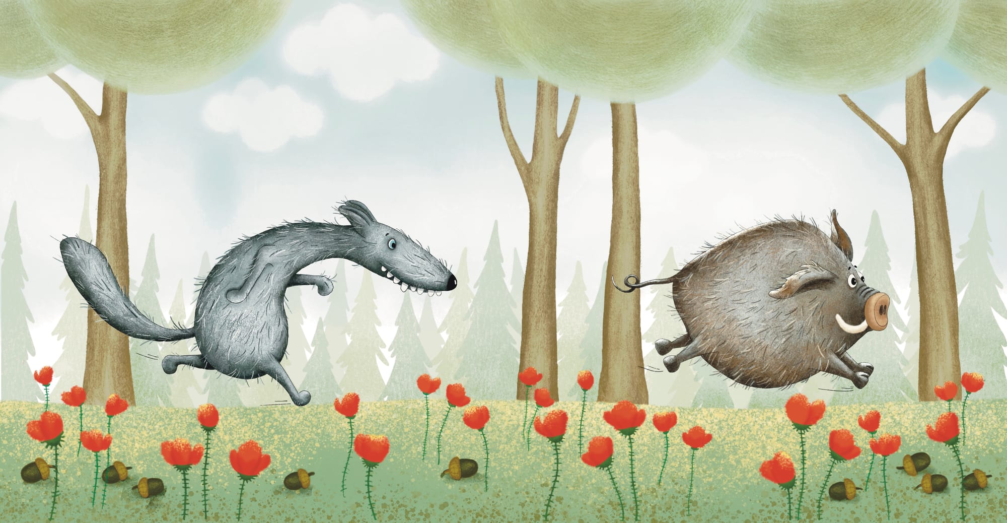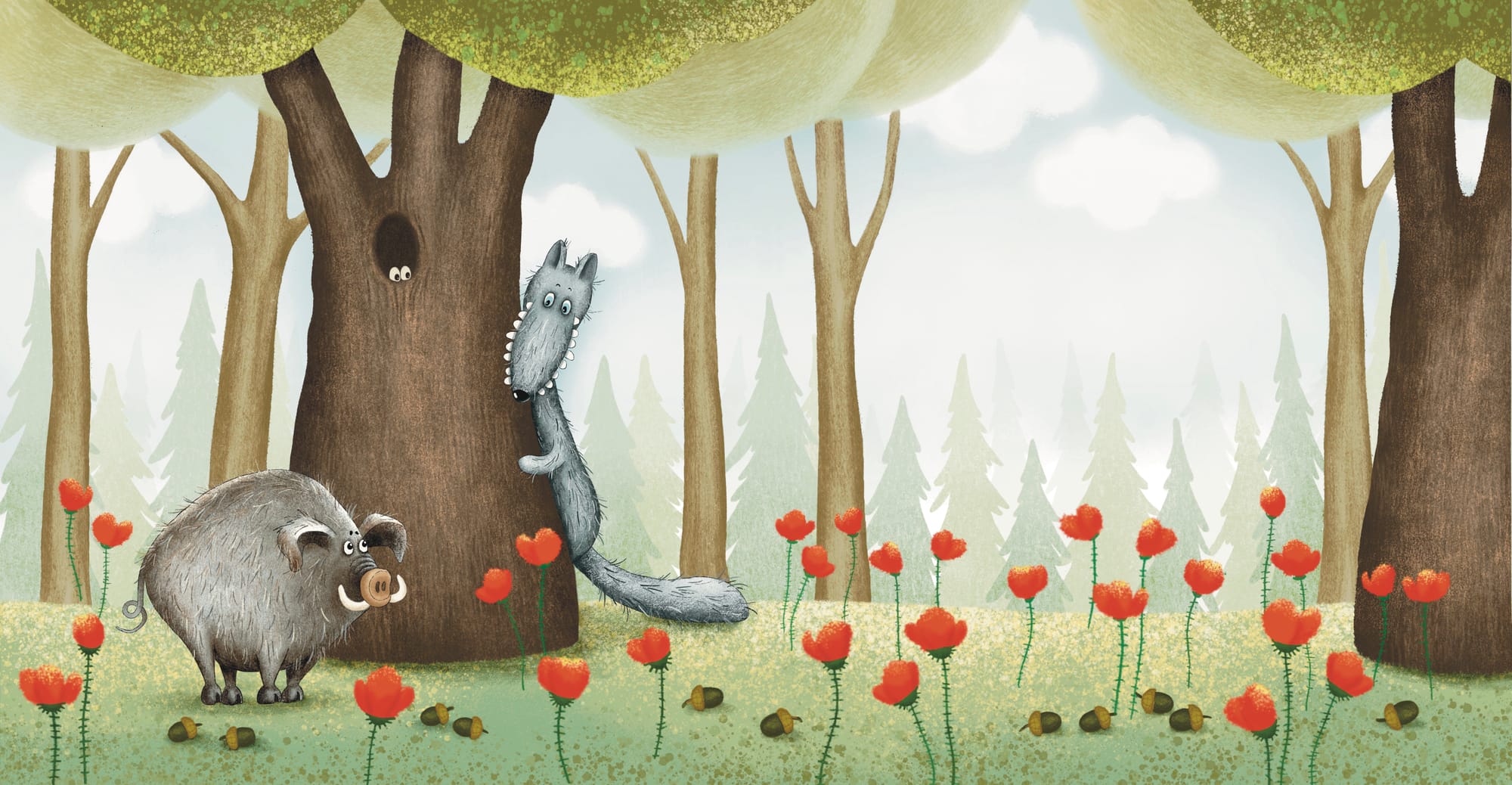 In the wild, wild forest of Chompwood, where animals behind every bush munch and crunch, there lived a wolf named McWoofy. He had a gentle soul — he truly and wholeheartedly loved the forest animals.